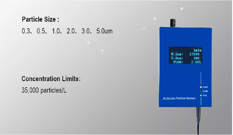 Channel sizes | Two Channels: 0.5μm,5.0μm Three Channels: 0.3μm,0.5μm,5.0μm Four Channels: 0.3μm,0.5μm,1.0μm,5.0μm Six Channels: 0.3μm,0.5μm,1.0μm,2.0μm,3.0μm,5.0μm(Customizable) | ||